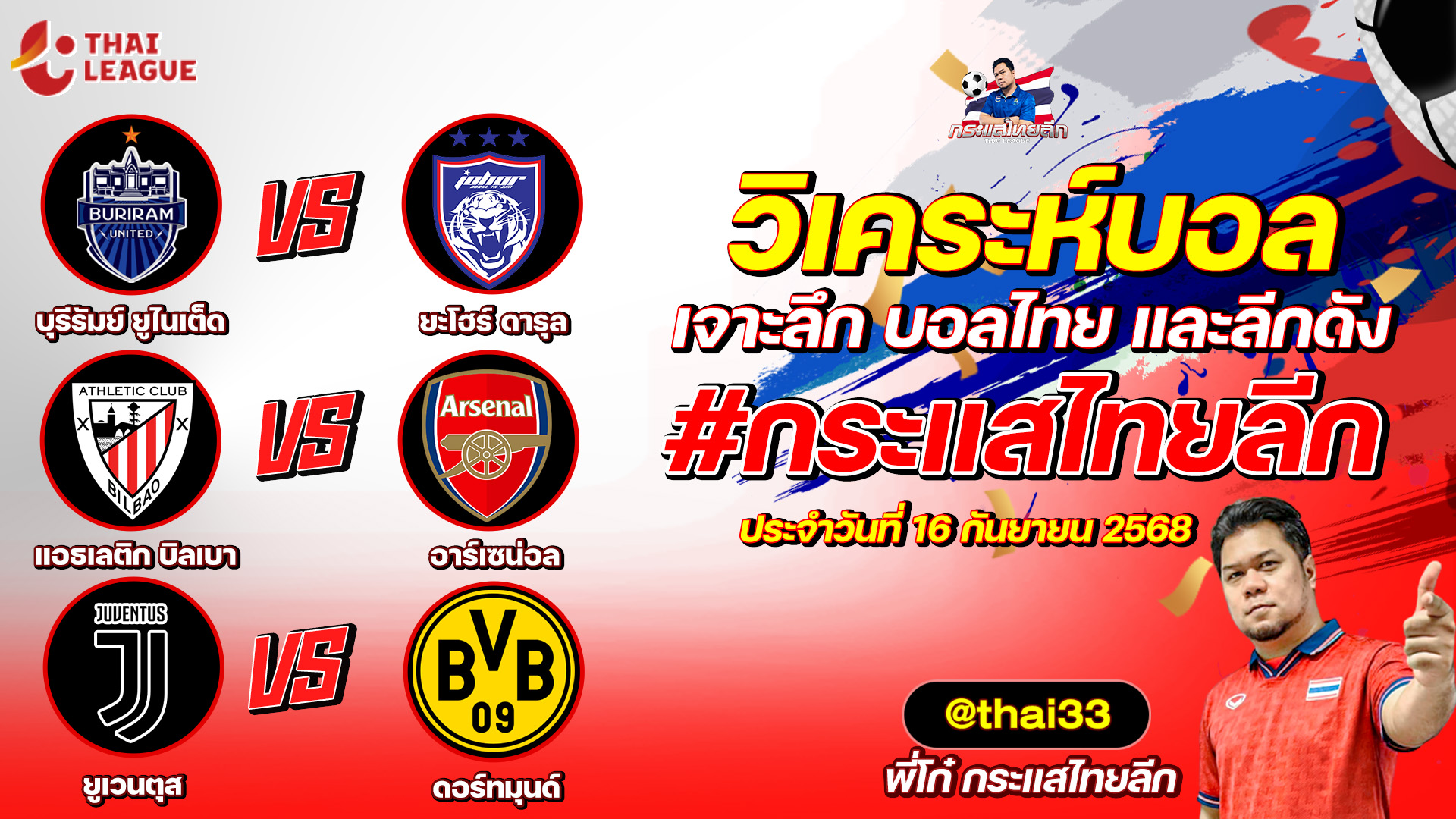 กระแสไทยลีก ทรรศนะบอล 3 คู่ ประจำวันที่ 16/09/2568 รับกระแสไทยลีก ทีเด็ดบอลวันนี้ ทีเด็ดบอลไทย ทรรศนะบอล 3 คู่ กับ พี่โก๋บอลไทย ได้ทุกวันที่ ช่อง กระแสไทยลีก ทีเด็ดบอล 3 คู๋ หน้ากล้อง | วันอังคาร ที่ 16 พฤษภาคม 256 ▁▁▁▁▁▁▁▁▁▁▁▁▁▁▁▁▁▁▁▁▁▁▁ 00:19 | บุรีรัมย์ ยูไนเต็ด VS ยะโฮร์ ดารุล WEB ADMIN 16 กันยายน 2025