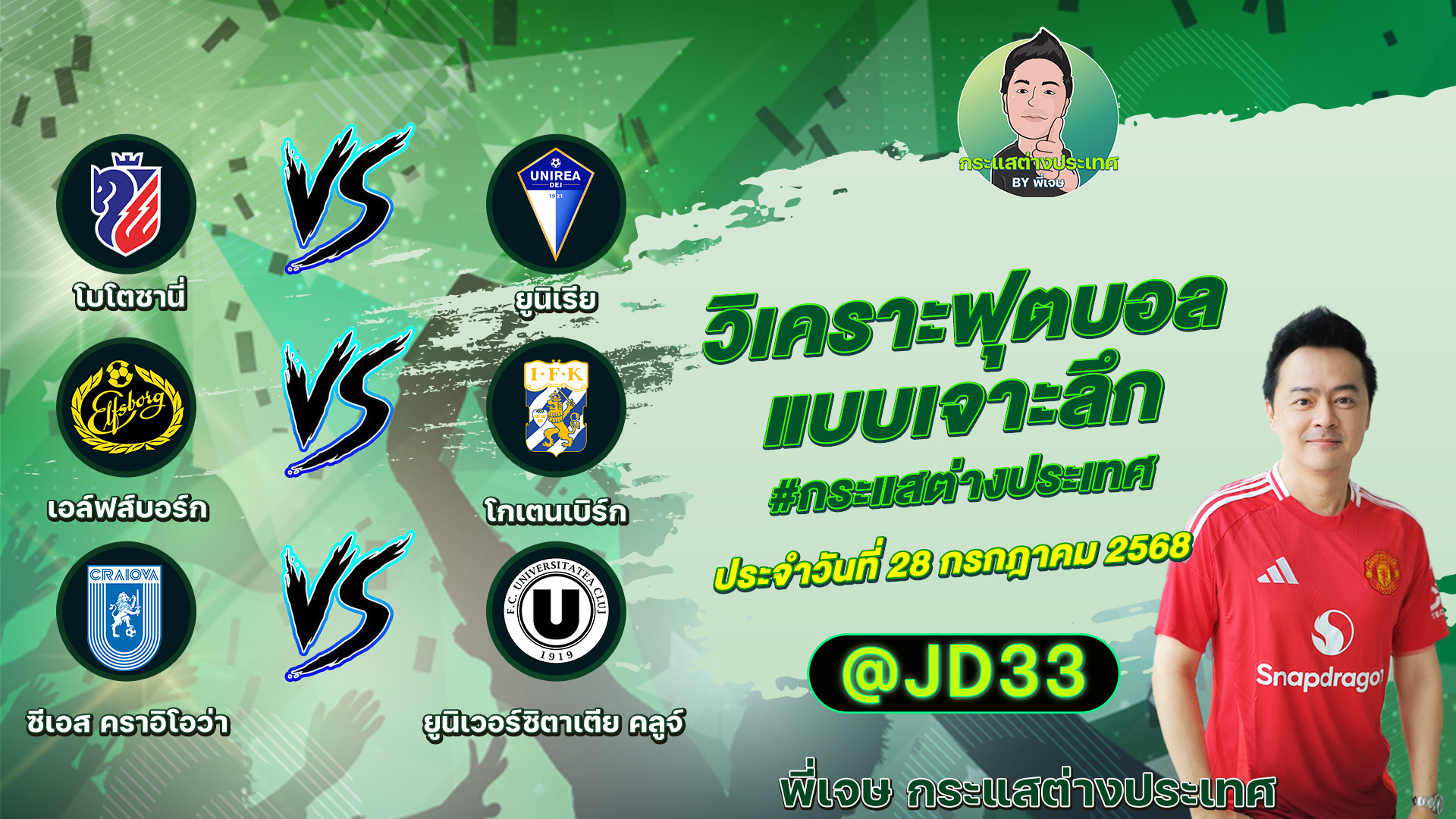 วิเคราะห์บอล กระแสต่างประเทศ 3 คู่ ประจำวันที่ 27/07/2568 รับ ทีเด็ดบอลวันนี้ ทีเด็ดบอลเต็ง ทรรศนะบอล 3 คู่ กับ พี่เจษ กระแสต่างประเทศ ได้ทุกวันที่นี่ที่เดียว ทีเด็ดบอล 3 คู่ หน้ากล้อง | วันจันทร์ ที่ 28 กรกฎาคม 2568 ▁▁▁▁▁▁▁▁▁▁▁▁▁▁▁▁▁▁▁▁▁▁▁ 00:22 | โบโตซานี่ VS ยูนิเรีย 01:08 | เอล์ฟส์บอร์ก WEB ADMIN 28 กรกฎาคม 2025