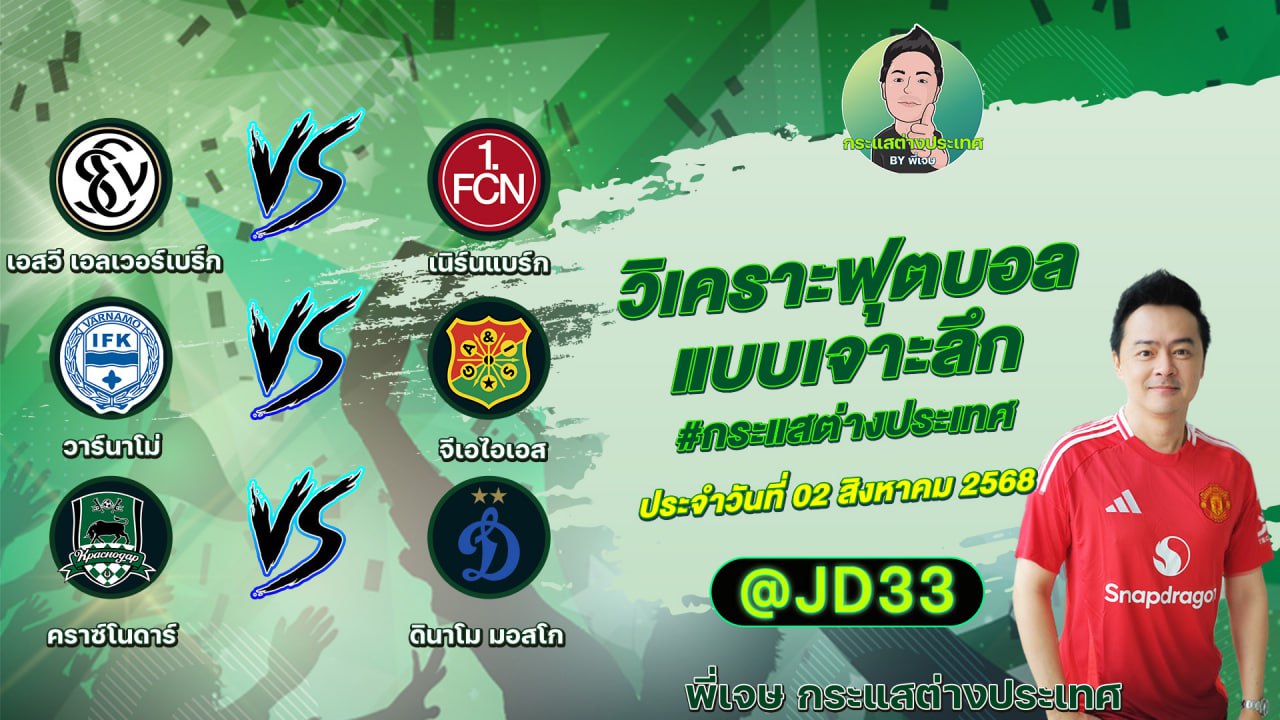 วิเคราะห์บอล กระแสต่างประเทศ 3 คู่ ประจำวันที่ 02/08/2568 รับ ทีเด็ดบอลวันนี้ ทีเด็ดบอลเต็ง ทรรศนะบอล 3 คู่ กับ พี่เจษ กระแสต่างประเทศ ได้ทุกวันที่นี่ที่เดียว ทีเด็ดบอล 3 คู่ หน้ากล้อง | วันเสาร์ ที่ 02 สิงหาคม 2568 ▁▁▁▁▁▁▁▁▁▁▁▁▁▁▁▁▁▁▁▁▁▁▁ 00:22 | เอสวี เอลเวอร์เบริ์ก VS เนิร์นแบร์ก 01:22 | WEB ADMIN 2 สิงหาคม 2025