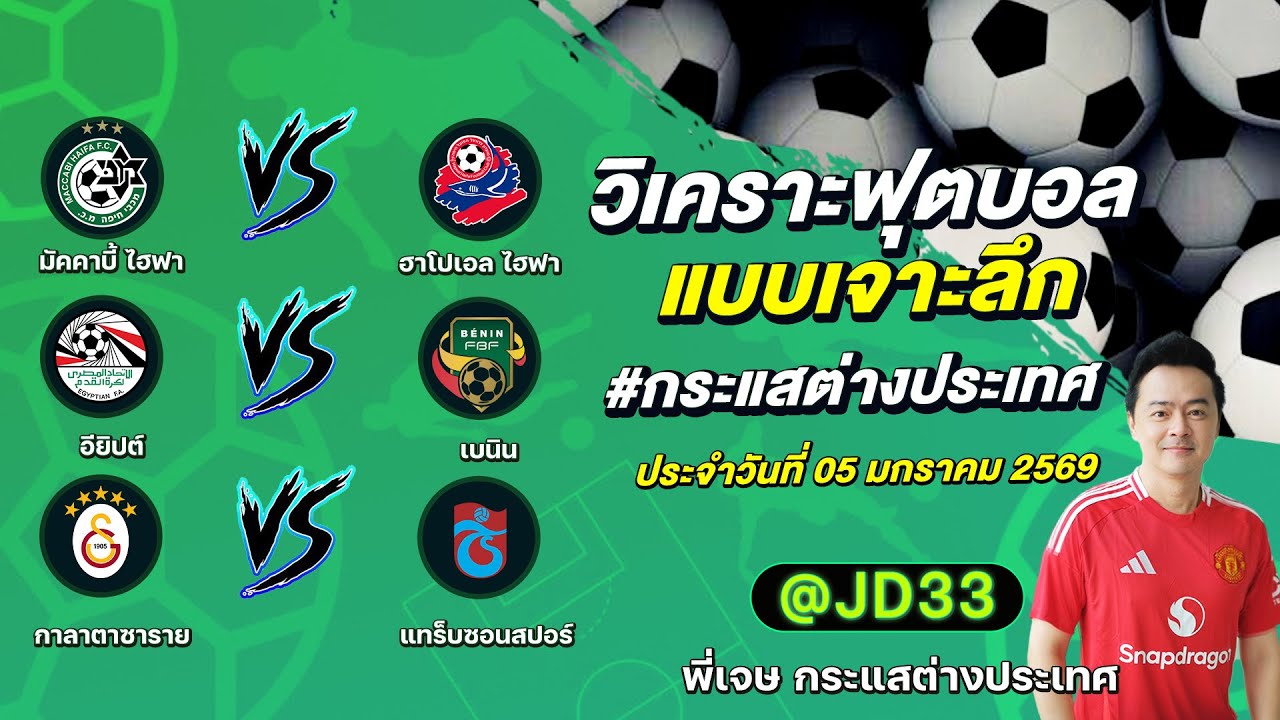วิเคราะห์บอล กระแสต่างประเทศ 3 คู่ ประจำวันที่ 05/01/2569 รับ ทีเด็ดบอลวันนี้ ทีเด็ดบอลเต็ง ทรรศนะบอล 3 คู่ กับ พี่เจษ กระแสต่างประเทศ ได้ทุกวันที่นี่ที่เดียว ทีเด็ดบอล 3 คู่ หน้ากล้อง | วันจันทร์ ที่ 05 มกราคม 2569 ▁▁▁▁▁▁▁▁▁▁▁▁▁▁▁▁▁▁▁▁▁▁▁ 00:23 | มัคคาบี้ ไฮฟา VS ฮาโปเอล ไฮฟา 01:12 | WEB ADMIN 5 มกราคม 2026