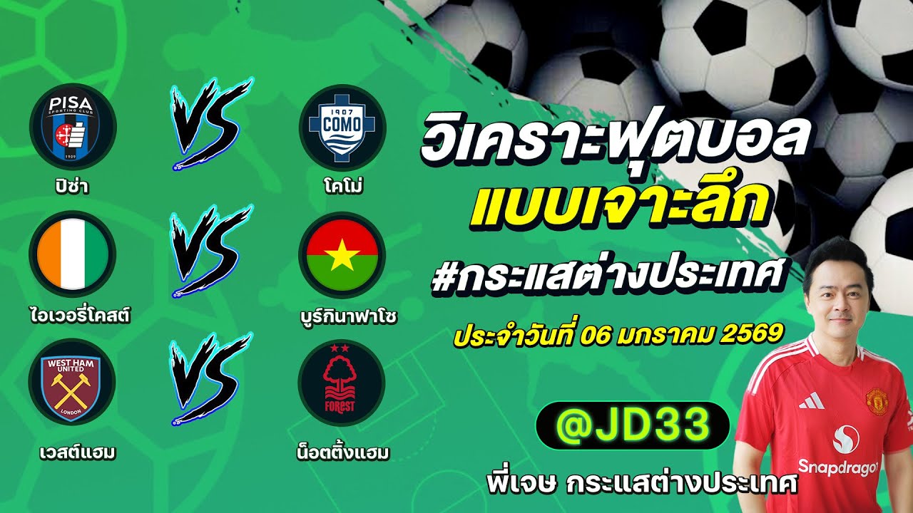 วิเคราะห์บอล กระแสต่างประเทศ 3 คู่ ประจำวันที่ 06/01/2569 รับ ทีเด็ดบอลวันนี้ ทีเด็ดบอลเต็ง ทรรศนะบอล 3 คู่ กับ พี่เจษ กระแสต่างประเทศ ได้ทุกวันที่นี่ที่เดียว ทีเด็ดบอล 3 คู่ หน้ากล้อง | วันอังคาร ที่ 06 มกราคม 2569 ▁▁▁▁▁▁▁▁▁▁▁▁▁▁▁▁▁▁▁▁▁▁▁ 00:14 | ปิซ่า VS โคโม่ 01:11 | ไอเวอรี่โคสต์ VS WEB ADMIN 6 มกราคม 2026