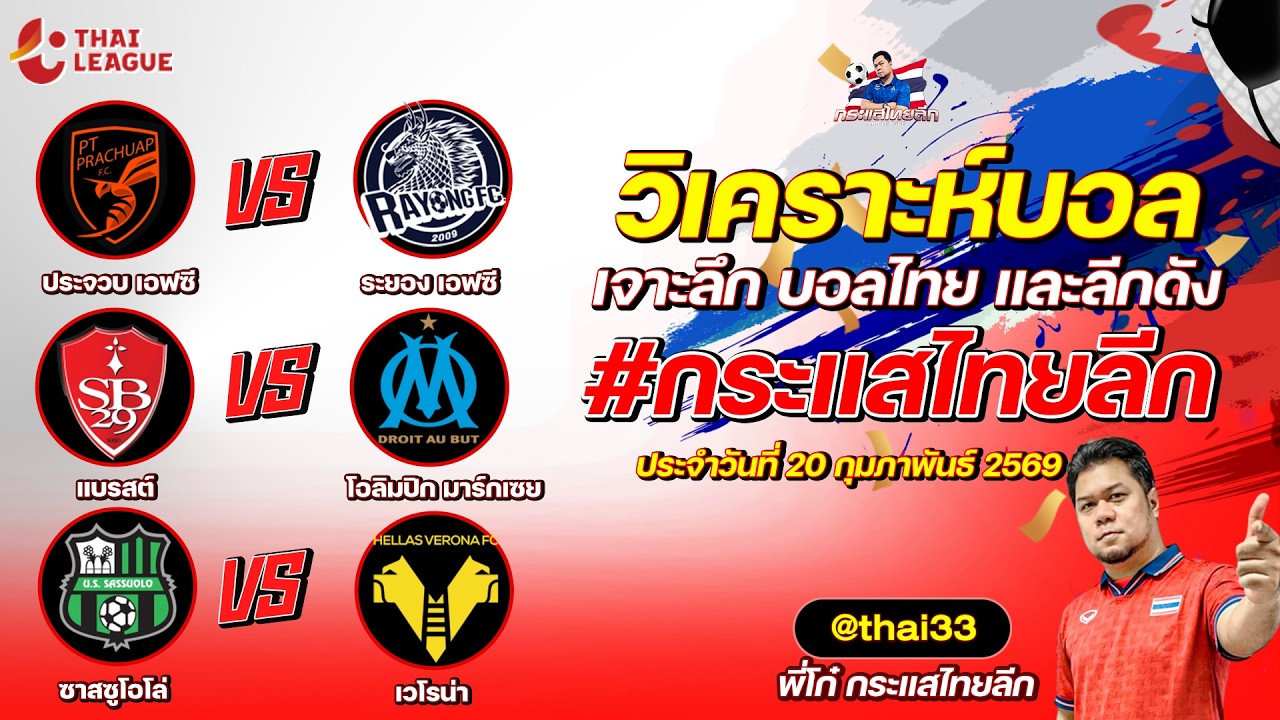 กระแสไทยลีก ทรรศนะบอล 3 คู่ ประจำวันที่ 20/02/2569 รับกระแสไทยลีก ทีเด็ดบอลวันนี้ ทีเด็ดบอลไทย ทรรศนะบอล 3 คู่ กับ พี่โก๋บอลไทย ได้ทุกวันที่ ช่อง กระแสไทยลีก ทีเด็ดบอล 3 คู๋ หน้ากล้อง | วันพฤหัสบดี ที่ 19 กุมภาพันธ์ 2569 ▁▁▁▁▁▁▁▁▁▁▁▁▁▁▁▁▁▁▁▁▁▁▁ 00:47 | ประจวบ เอฟซี VS ระยอง เอฟซี WEB ADMIN 20 กุมภาพันธ์ 2026