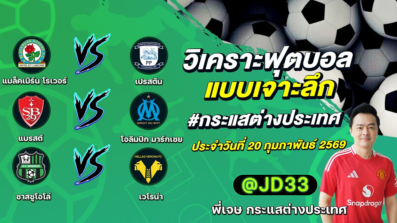 วิเคราะห์บอล กระแสต่างประเทศ 3 คู่ ประจำวันที่ 20/02/2569 รับ ทีเด็ดบอลวันนี้ ทีเด็ดบอลเต็ง ทรรศนะบอล 3 คู่ กับ พี่เจษ กระแสต่างประเทศ ได้ทุกวันที่นี่ที่เดียว ทีเด็ดบอล 3 คู่ หน้ากล้อง | วันศุกร์ ที่ 20 กุมภาพันธ์ 2569 ▁▁▁▁▁▁▁▁▁▁▁▁▁▁▁▁▁▁▁▁▁▁▁ 00:20 | แบล็คเบิร์น โรเวอร์ VS เปรสตัน 01:07 | WEB ADMIN 20 กุมภาพันธ์ 2026