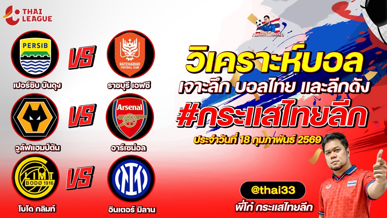 กระแสไทยลีก ทรรศนะบอล 3 คู่ ประจำวันที่ 18/02/2569 รับกระแสไทยลีก ทีเด็ดบอลวันนี้ ทีเด็ดบอลไทย ทรรศนะบอล 3 คู่ กับ พี่โก๋บอลไทย ได้ทุกวันที่ ช่อง กระแสไทยลีก ทีเด็ดบอล 3 คู๋ หน้ากล้อง | วันพุธ ที่ 18 กุมภาพันธ์ 2569 ▁▁▁▁▁▁▁▁▁▁▁▁▁▁▁▁▁▁▁▁▁▁▁ 00:38 | เปอร์ซิบ บันดุง VS ราชบุรี เอฟซี WEB ADMIN 18 กุมภาพันธ์ 2026