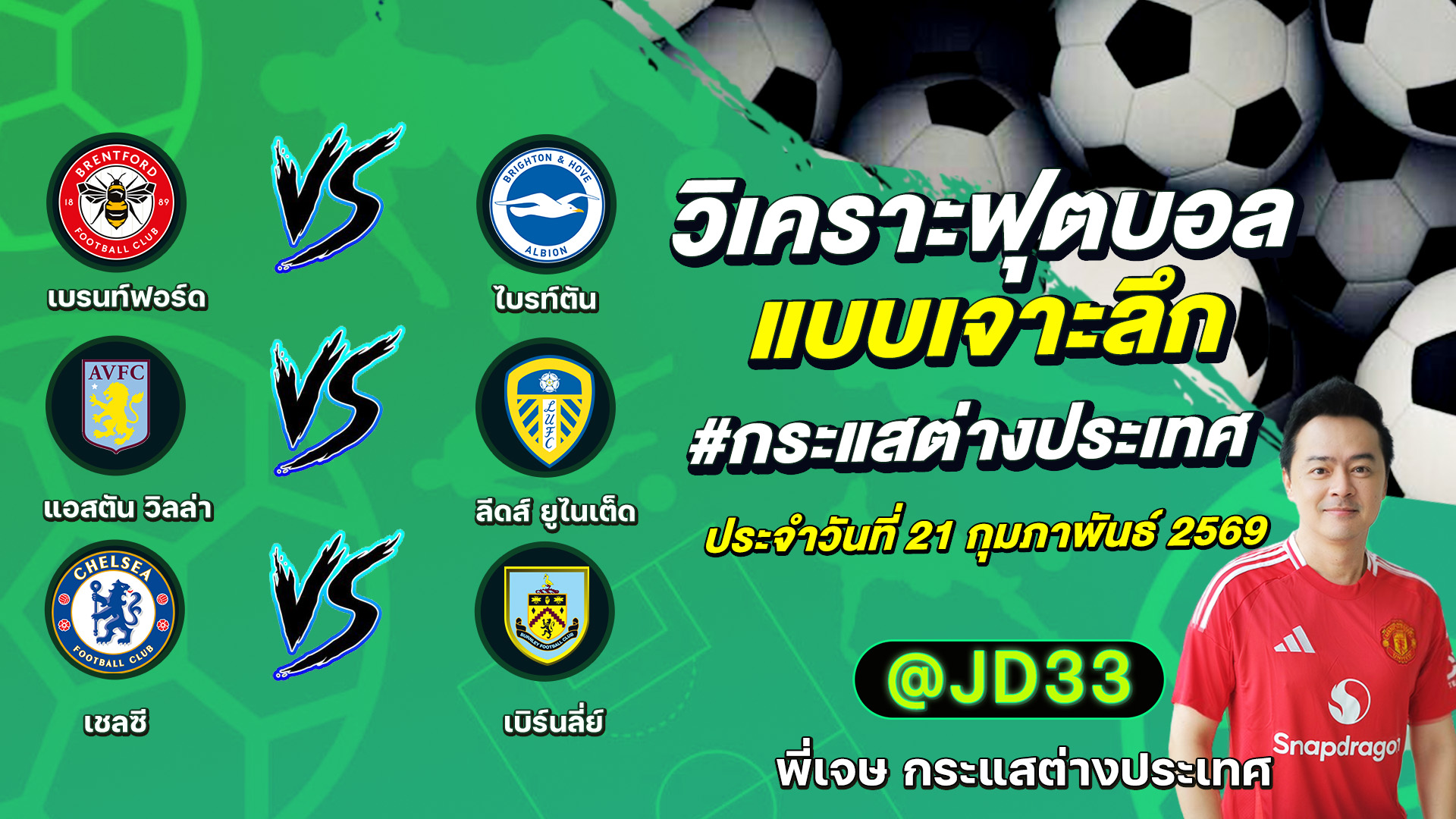 วิเคราะห์บอล กระแสต่างประเทศ 3 คู่ ประจำวันที่ 21/02/2569 รับ ทีเด็ดบอลวันนี้ ทีเด็ดบอลเต็ง ทรรศนะบอล 3 คู่ กับ พี่เจษ กระแสต่างประเทศ ได้ทุกวันที่นี่ที่เดียว ทีเด็ดบอล 3 คู่ หน้ากล้อง | วันเสาร์ ที่ 21 กุมภาพันธ์ 2569 ▁▁▁▁▁▁▁▁▁▁▁▁▁▁▁▁▁▁▁▁▁▁▁ 00:19 | เบรนท์ฟอร์ด VS ไบรท์ตัน 01:11 | แอสตัน WEB ADMIN 21 กุมภาพันธ์ 2026