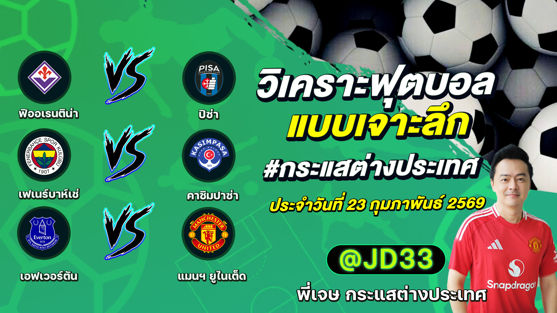 วิเคราะห์บอล กระแสต่างประเทศ 3 คู่ ประจำวันที่ 23/02/2569 รับ ทีเด็ดบอลวันนี้ ทีเด็ดบอลเต็ง ทรรศนะบอล 3 คู่ กับ พี่เจษ กระแสต่างประเทศ ได้ทุกวันที่นี่ที่เดียว ทีเด็ดบอล 3 คู่ หน้ากล้อง | วันจันทร์ ที่ 23 กุมภาพันธ์ 2569 ▁▁▁▁▁▁▁▁▁▁▁▁▁▁▁▁▁▁▁▁▁▁▁ 00:17 | ฟิออเรนติน่า VS ปิซ่า 03:32 | เฟเนร์บาห์เช่ WEB ADMIN 23 กุมภาพันธ์ 2026