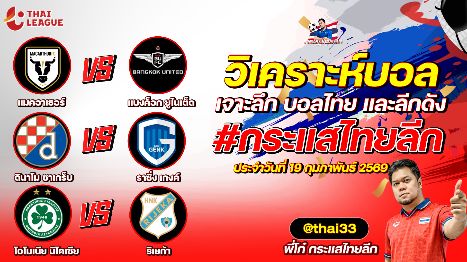 กระแสไทยลีก ทรรศนะบอล 3 คู่ ประจำวันที่ 19/02/2569 รับกระแสไทยลีก ทีเด็ดบอลวันนี้ ทีเด็ดบอลไทย ทรรศนะบอล 3 คู่ กับ พี่โก๋บอลไทย ได้ทุกวันที่ ช่อง กระแสไทยลีก ทีเด็ดบอล 3 คู๋ หน้ากล้อง | วันพฤหัสบดี ที่ 19 กุมภาพันธ์ 2569 ▁▁▁▁▁▁▁▁▁▁▁▁▁▁▁▁▁▁▁▁▁▁▁ 00:56 | แมคอาเธอร์ VS แบงค็อก ยูไนเต็ด 02:07 WEB ADMIN 19 กุมภาพันธ์ 2026