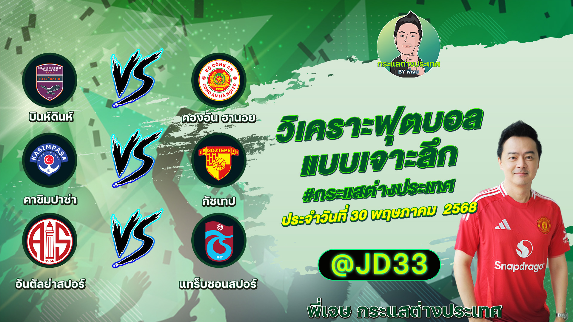 วิเคราะห์บอล กระแสต่างประเทศ 3 คู่ ประจำวันที่30/05/2568 รับ ทีเด็ดบอลวันนี้ ทีเด็ดบอลเต็ง ทรรศนะบอล 3 คู่ กับ พี่เจษ กระแสต่างประเทศ ได้ทุกวันที่นี่ที่เดียว ทีเด็ดบอล 3 คู่ หน้ากล้อง | วันศุกร์ ที่ 30 พฤษภาคม 2568 ▁▁▁▁▁▁▁▁▁▁▁▁▁▁▁▁▁▁▁▁▁▁▁ 00:21 | บินห์ดินห์ VS คองอัน ฮานอย 01:16 | WEB ADMIN 30 พฤษภาคม 2025