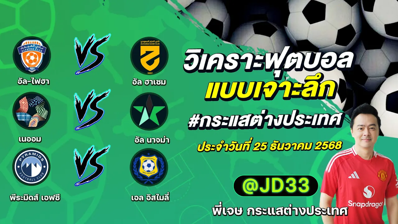 วิเคราะห์บอล กระแสต่างประเทศ 3 คู่ ประจำวันที่ 25/12/2568 รับ ทีเด็ดบอลวันนี้ ทีเด็ดบอลเต็ง ทรรศนะบอล 3 คู่ กับ พี่เจษ กระแสต่างประเทศ ได้ทุกวันที่นี่ที่เดียว ทีเด็ดบอล 3 คู่ หน้ากล้อง | วันพฤหัสบดี ที่ 25 ธันวาคม 2568 ▁▁▁▁▁▁▁▁▁▁▁▁▁▁▁▁▁▁▁▁▁▁▁ 00:19 | อัล-ไฟฮา VS อัล ฮาเซม 01:18 | เนออม WEB ADMIN 25 ธันวาคม 2025