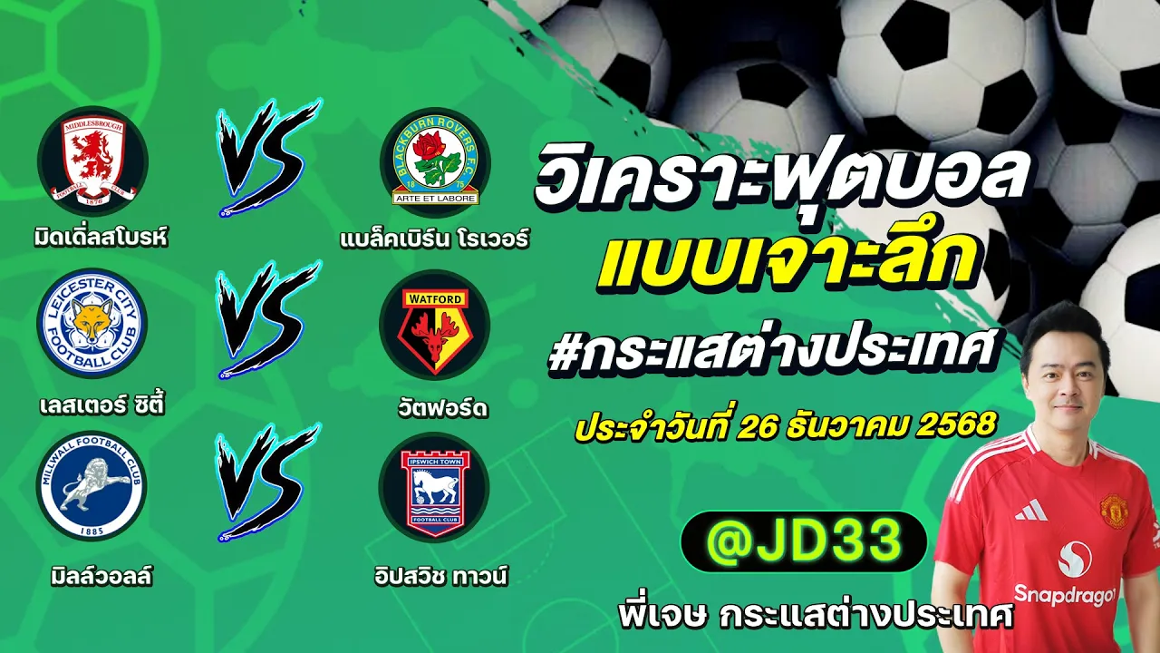 วิเคราะห์บอล กระแสต่างประเทศ 3 คู่ ประจำวันที่ 26/12/2568 รับ ทีเด็ดบอลวันนี้ ทีเด็ดบอลเต็ง ทรรศนะบอล 3 คู่ กับ พี่เจษ กระแสต่างประเทศ ได้ทุกวันที่นี่ที่เดียว ทีเด็ดบอล 3 คู่ หน้ากล้อง | วัน ศุกร์ ที่ 26 ธันวาคม 2568 ▁▁▁▁▁▁▁▁▁▁▁▁▁▁▁▁▁▁▁▁▁▁▁ 00:19 | ดเดิ่ลสโบรห์ VS แบล็คเบิร์น โรเวอร์ 01:11 WEB ADMIN 26 ธันวาคม 2025