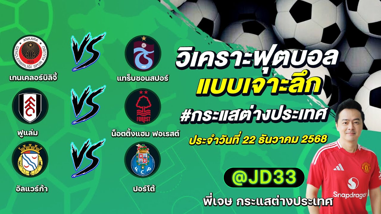วิเคราะห์บอล กระแสต่างประเทศ 3 คู่ ประจำวันที่ 22/12/2568 รับ ทีเด็ดบอลวันนี้ ทีเด็ดบอลเต็ง ทรรศนะบอล 3 คู่ กับ พี่เจษ กระแสต่างประเทศ ได้ทุกวันที่นี่ที่เดียว ทีเด็ดบอล 3 คู่ หน้ากล้อง | วันจันทร์ ที่ 22 ธันวาคม 2568 ▁▁▁▁▁▁▁▁▁▁▁▁▁▁▁▁▁▁▁▁▁▁▁ 00:19 | เกนเคลอร์บิลิจี้ VS แทร็บซอนสปอร์ 01:14 | ฟูแล่ม VS WEB ADMIN 22 ธันวาคม 2025