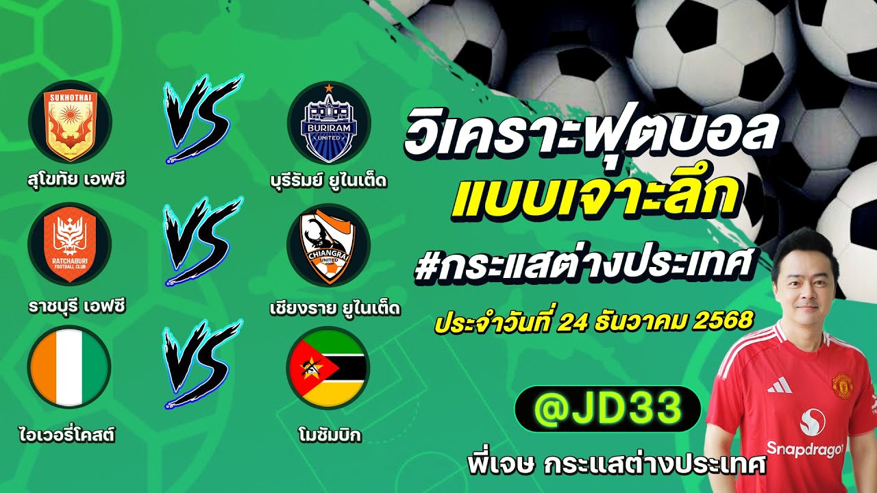วิเคราะห์บอล กระแสต่างประเทศ 3 คู่ ประจำวันที่ 24/12/2568 รับ ทีเด็ดบอลวันนี้ ทีเด็ดบอลเต็ง ทรรศนะบอล 3 คู่ กับ พี่เจษ กระแสต่างประเทศ ได้ทุกวันที่นี่ที่เดียว ทีเด็ดบอล 3 คู่ หน้ากล้อง | วันพุธ ที่ 24 ธันวาคม 2568 ▁▁▁▁▁▁▁▁▁▁▁▁▁▁▁▁▁▁▁▁▁▁▁ 00:23 | สุโขทัย เอฟซี VS บุรีรัมย์ ยูไนเต็ด 01:22 WEB ADMIN 24 ธันวาคม 2025