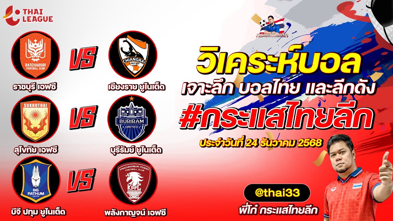 กระแสไทยลีก ทรรศนะบอล 3 คู่ ประจำวันที่ 24/12/2568 รับกระแสไทยลีก ทีเด็ดบอลวันนี้ ทีเด็ดบอลไทย ทรรศนะบอล 3 คู่ กับ พี่โก๋บอลไทย ได้ทุกวันที่ ช่อง กระแสไทยลีก ทีเด็ดบอล 3 คู๋ หน้ากล้อง | วันพุธ ที่ 24 ธันวาคม 2568 ▁▁▁▁▁▁▁▁▁▁▁▁▁▁▁▁▁▁▁▁▁▁▁ 00:50 | ราชบุรี เอฟซี VS เชียงราย ยูไนเต็ด WEB ADMIN 24 ธันวาคม 2025