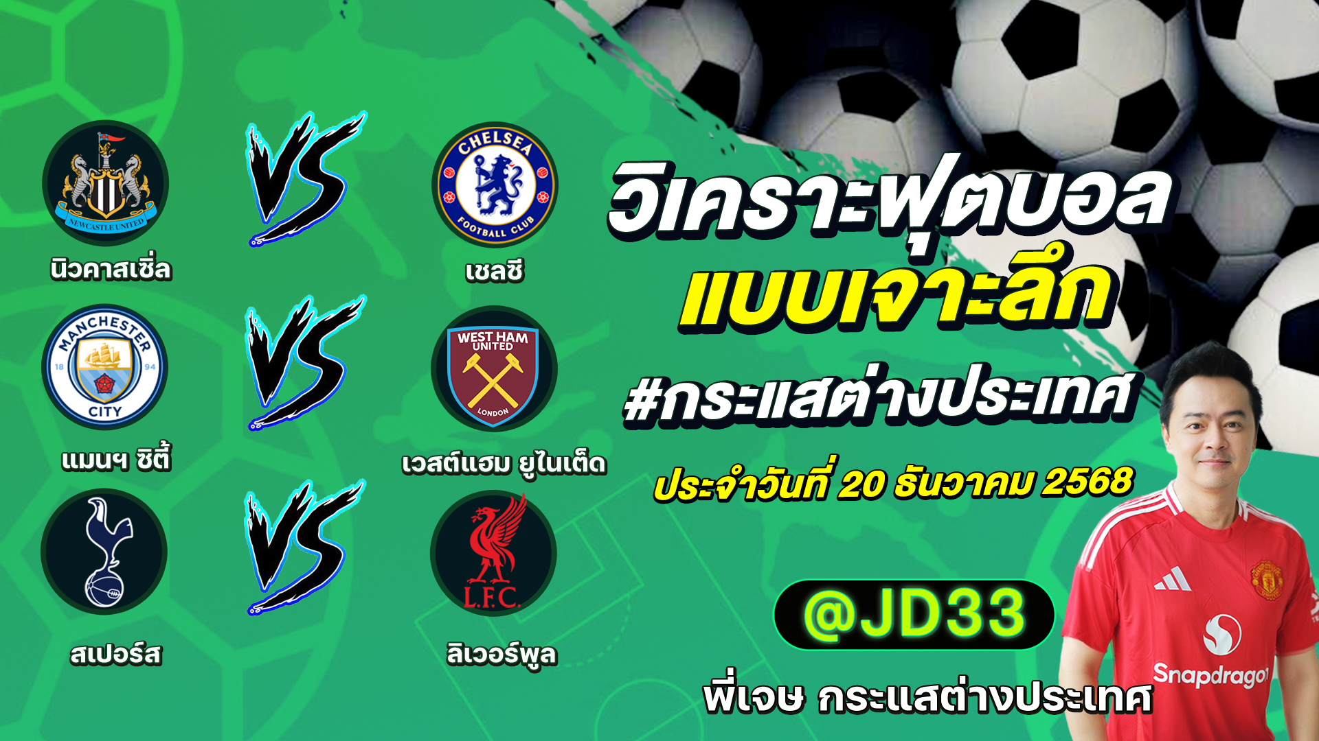 วิเคราะห์บอล กระแสต่างประเทศ 3 คู่ ประจำวันที่ 20/12/2568 รับ ทีเด็ดบอลวันนี้ ทีเด็ดบอลเต็ง ทรรศนะบอล 3 คู่ กับ พี่เจษ กระแสต่างประเทศ ได้ทุกวันที่นี่ที่เดียว ทีเด็ดบอล 3 คู่ หน้ากล้อง | วันเสาร์ ที่ 20 ธันวาคม 2568 ▁▁▁▁▁▁▁▁▁▁▁▁▁▁▁▁▁▁▁▁▁▁▁ 00:20 | นิวคาสเซิ่ล VS เชลซี 01:33 | แมนฯ ซิตี้ WEB ADMIN 20 ธันวาคม 2025