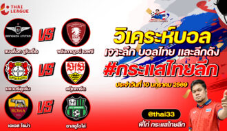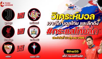 กระแสไทยลีก ทรรศนะบอล 3 คู่ ประจำวันที่ 15/01/2569